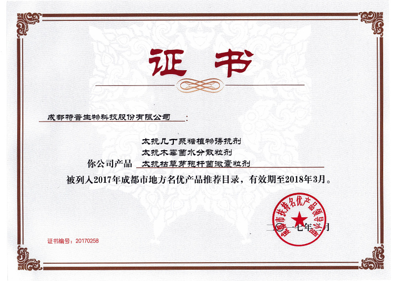 2017成都市名優(yōu)產(chǎn)品證書