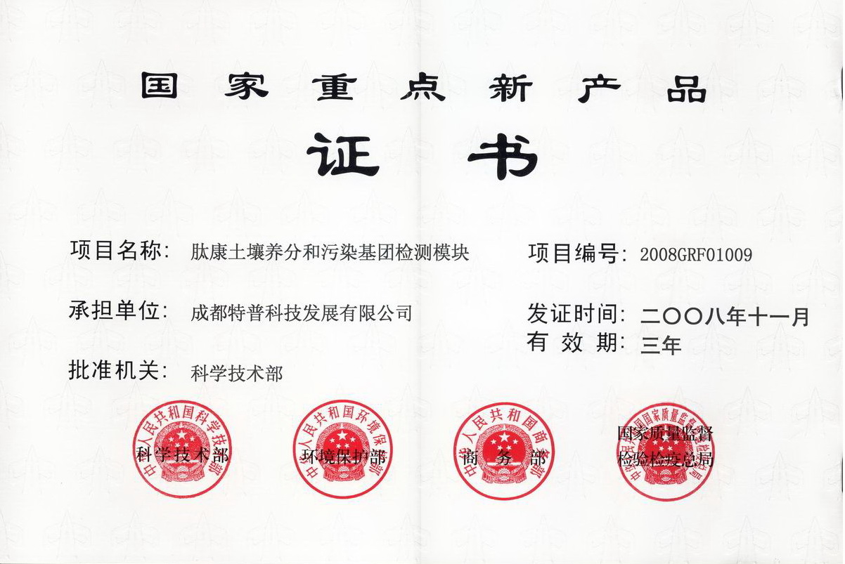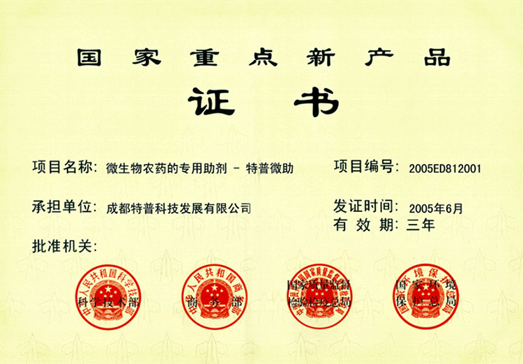 國家重點新產品證書