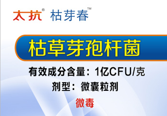 太抗系列生物農(nóng)藥介紹——枯芽春篇發(fā)布日期:2016.03.02點(diǎn)擊量:8670一、產(chǎn)品特點(diǎn)特點(diǎn):我國(guó)唯一正式登記為微膠囊劑的生物殺菌劑,重點(diǎn)用于土傳病害防治,尤其是對(duì)枯萎病防治,促進(jìn)根系生長(zhǎng);食品安全性:毒性低于食鹽,有機(jī)認(rèn)證在辦理中;農(nóng)作物安全:對(duì)作物安全無(wú)藥害。 二、枯草芽孢桿... -