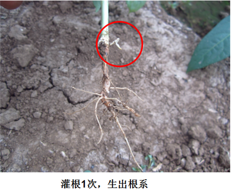 試驗結果:根腐發(fā)病部位上方長出新根,植株恢復健康生長。