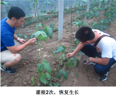 試驗結果:跟蹤示范過程中,農戶于師傅對“枯木逢春”組合的效果一直都非常滿意,示范區(qū)沒有死棵現(xiàn)象,植株長勢也非常好,尤其是在促進根系生長方面效果尤為突出。
